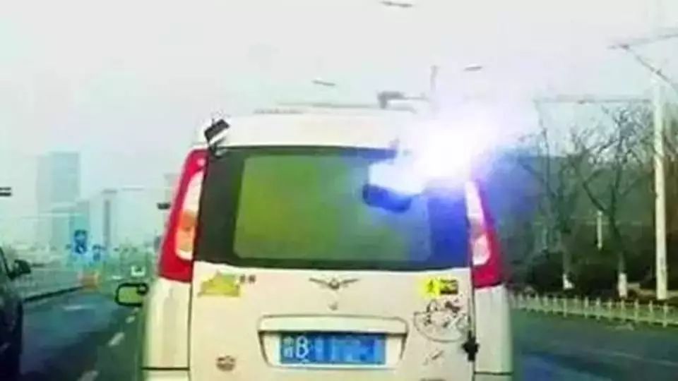 (3)車主奇招二:有的車主為了讓“遠光族”也感覺一下被刺的“酸爽”,直接在車的背面貼了一塊反光鏡,你射我反,全部還給你!